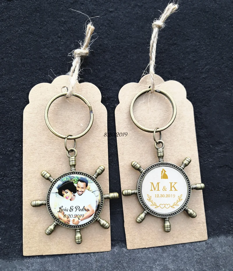 50pcs Personalized name date Take Custom Photo Keychain Birthday Gifts Key chain Wedding Gifts For