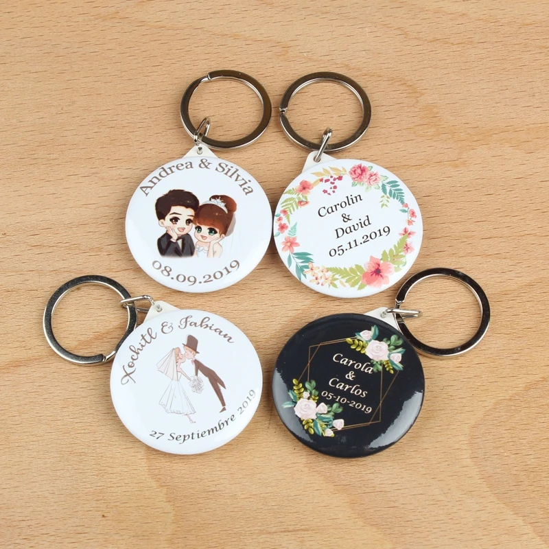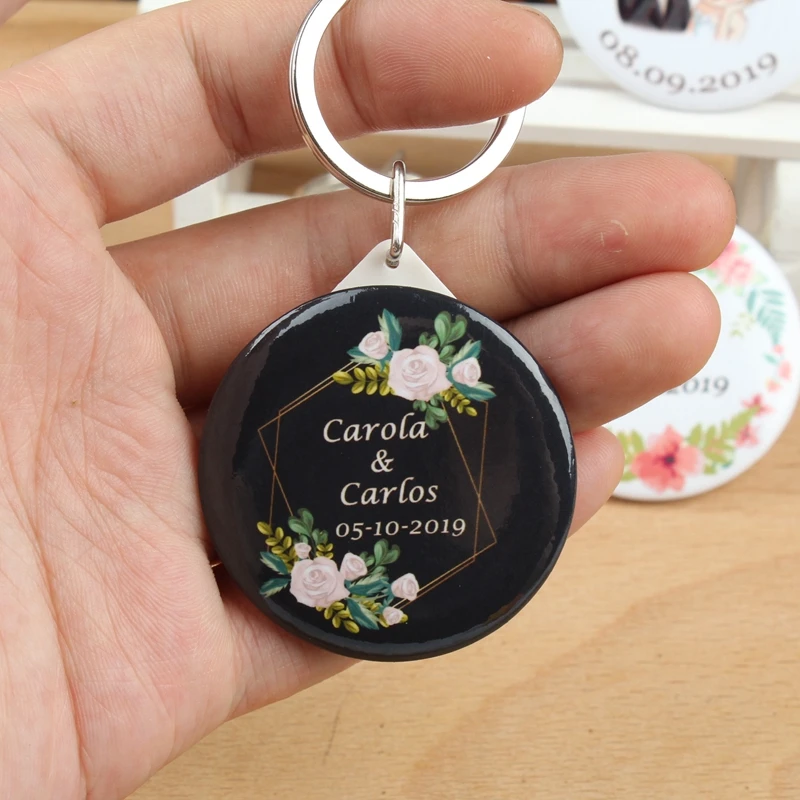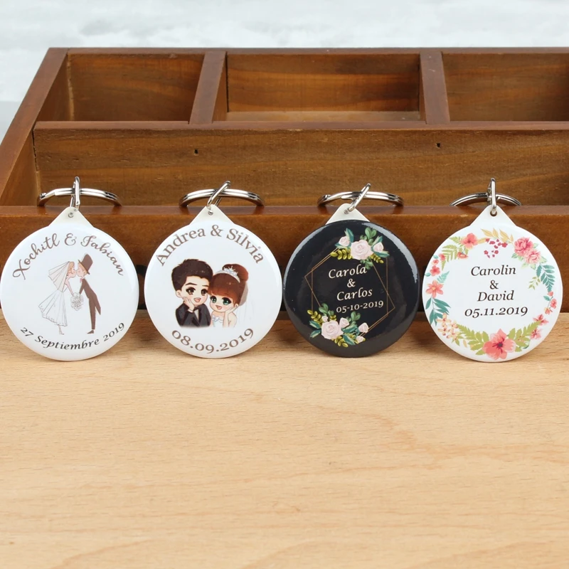 TOP Personalized name date Keychain with Mirror Custom your logo Print photos Wedding Favors And Gifts