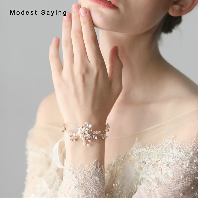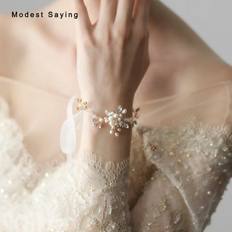 Delicate Pearls Bridal Wrist Corsages 2019 for Bride Formal Handmade Crystal Bangles Bridesmaid Wed